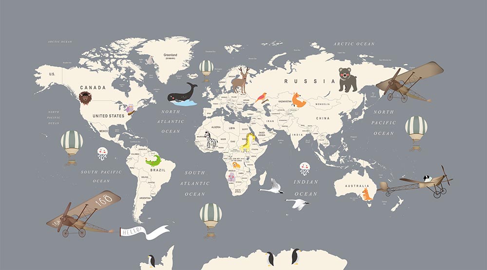 • Çocuk Odası Duvar Kağıdı Eğitici Dünya Haritası 3 boyutlu şekilde satın alın!