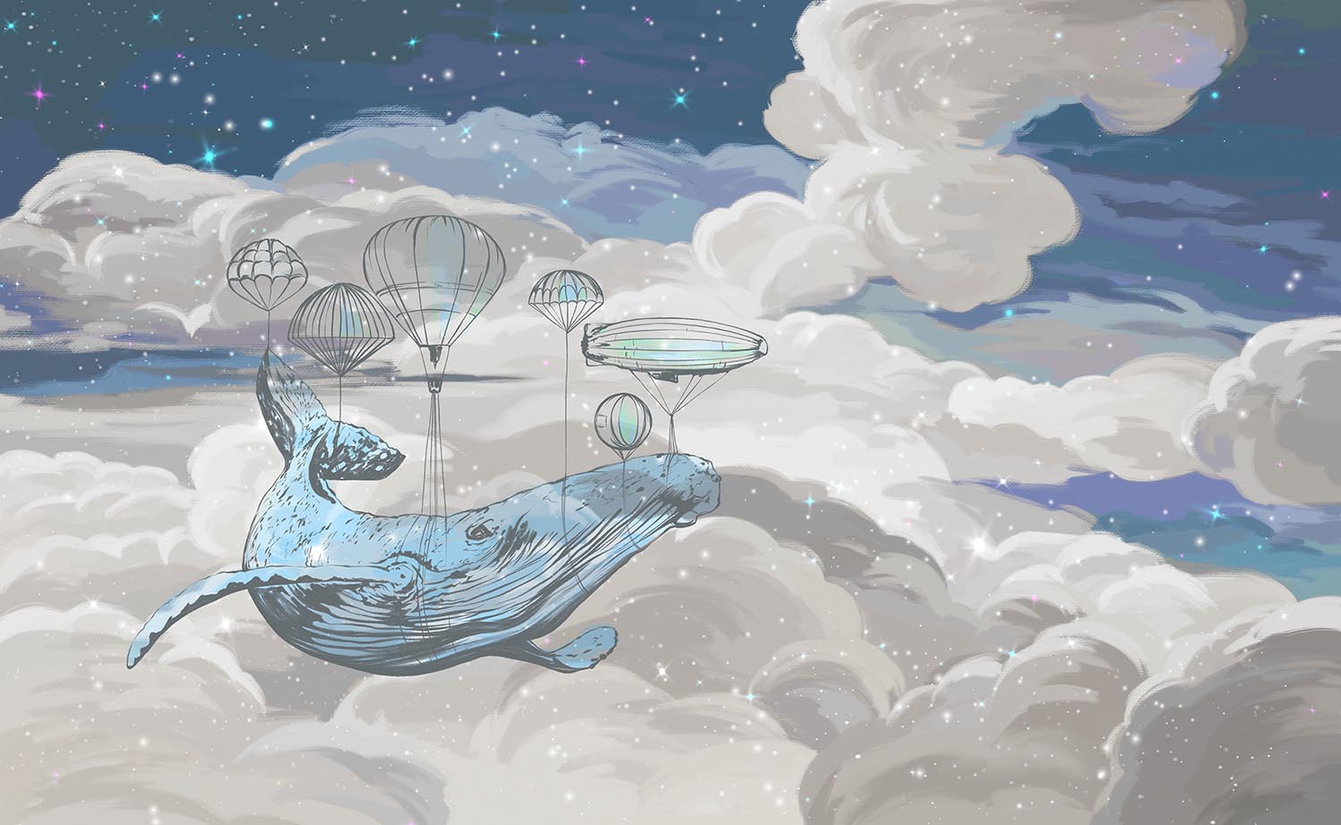 • Çocuk Odası Duvar Kağıdı Gökyüzünde Uçan Balina 3 boyutlu şekilde satın alın!