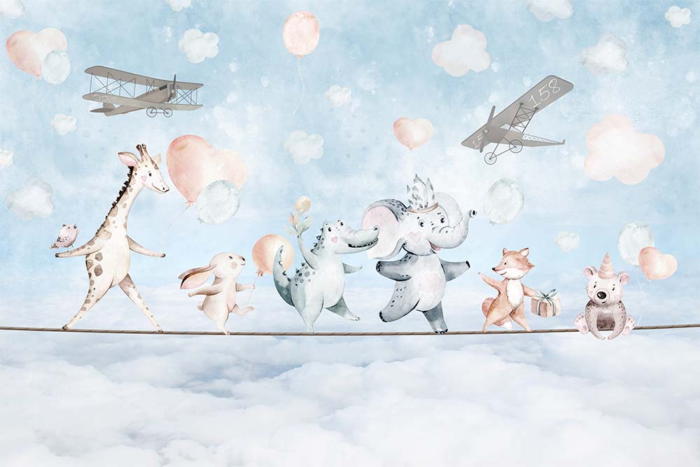 Çocuk Odası Duvar Kağıdı ip Üzerinde Hayvanlar