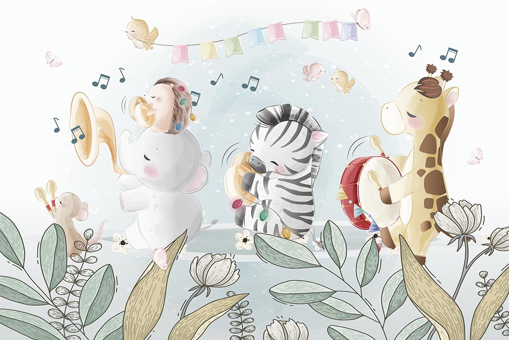 • Çocuk Odası Duvar Kağıdı Müzik Çalan Sevimli Hayvanlar 3 boyutlu şekilde satın alın!