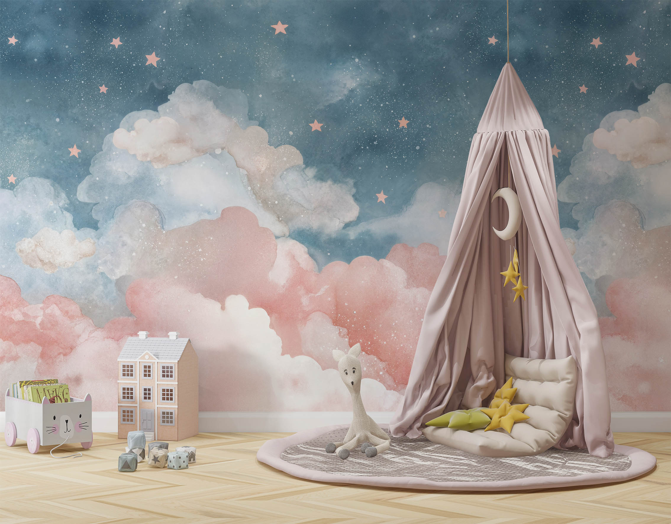 Çocuk ve Genç Odası Duvar Kağıdı Modelleri Renkli Bulutlar