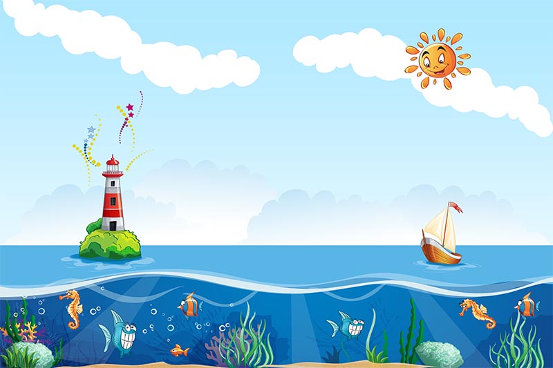 • Deniz Altı Balıklar ve Deniz Feneri Çocuk Odası Duvar Kağıdı 3 boyutlu şekilde satın alın!