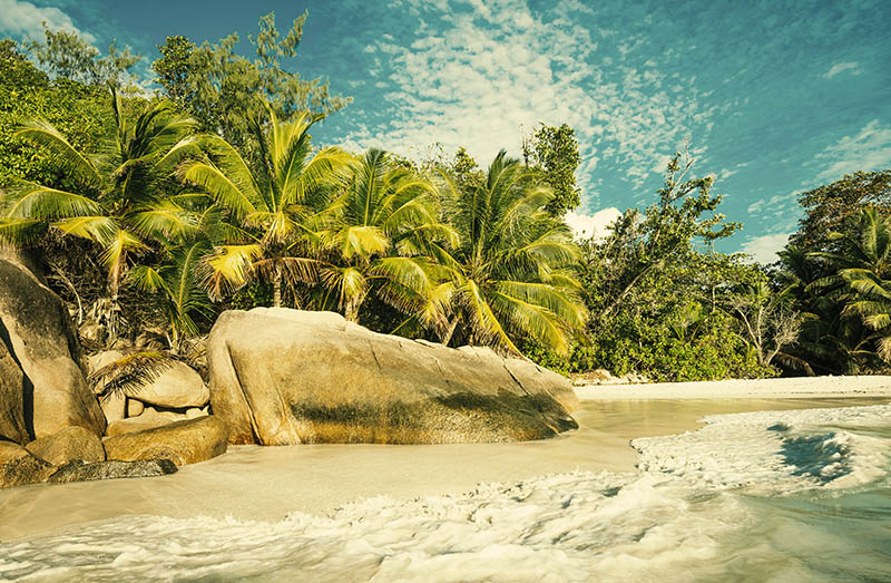 Deniz Kenarı Kayalıklar ve Palmiye Ağaçları