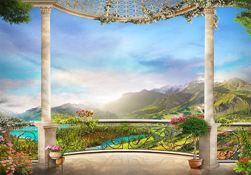 • Derinlik Balkon Manzarası Duvar Kağıdı 3 boyutlu şekilde satın alın!