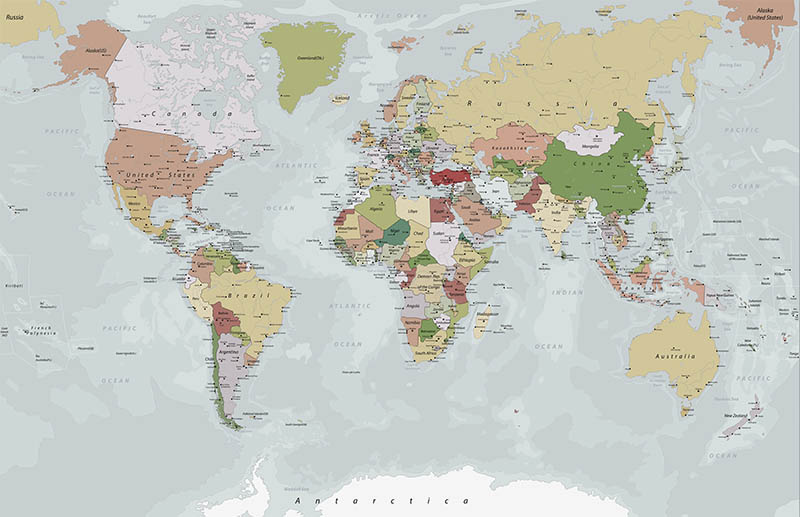 • Detaylı Siyasi Dünya Haritası Duvar Kağıdı 3 boyutlu şekilde satın alın!
