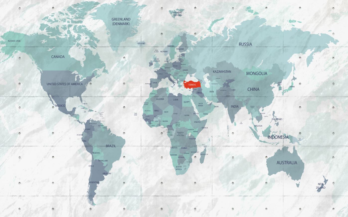 • Dünya Haritası Duvar Kağıdı , 2025 Trend Harita Duvar Kağıdı , Beton Zemin 3 boyutlu şekilde satın alın!