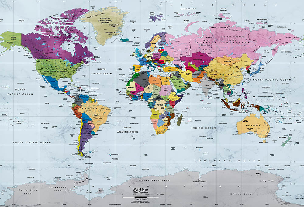 • Dünya Haritası Duvar Kağıdı (Harita 110) 3 boyutlu şekilde satın alın!