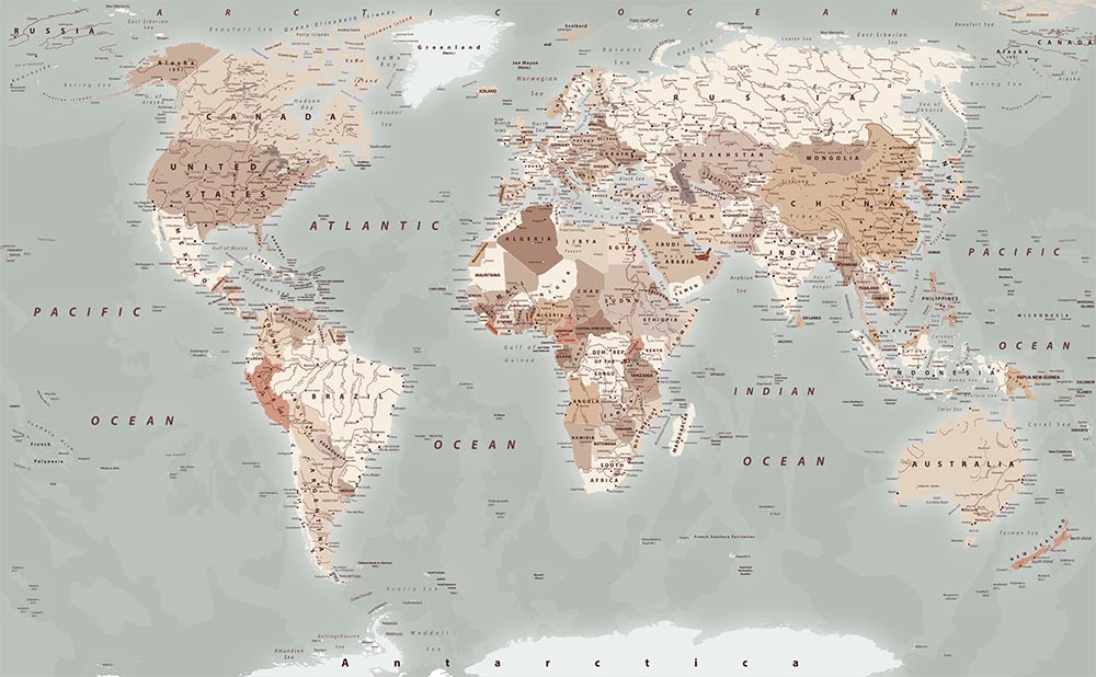 • Dünya Haritası Duvar Kağıdı (Harita 123) 3 boyutlu şekilde satın alın!