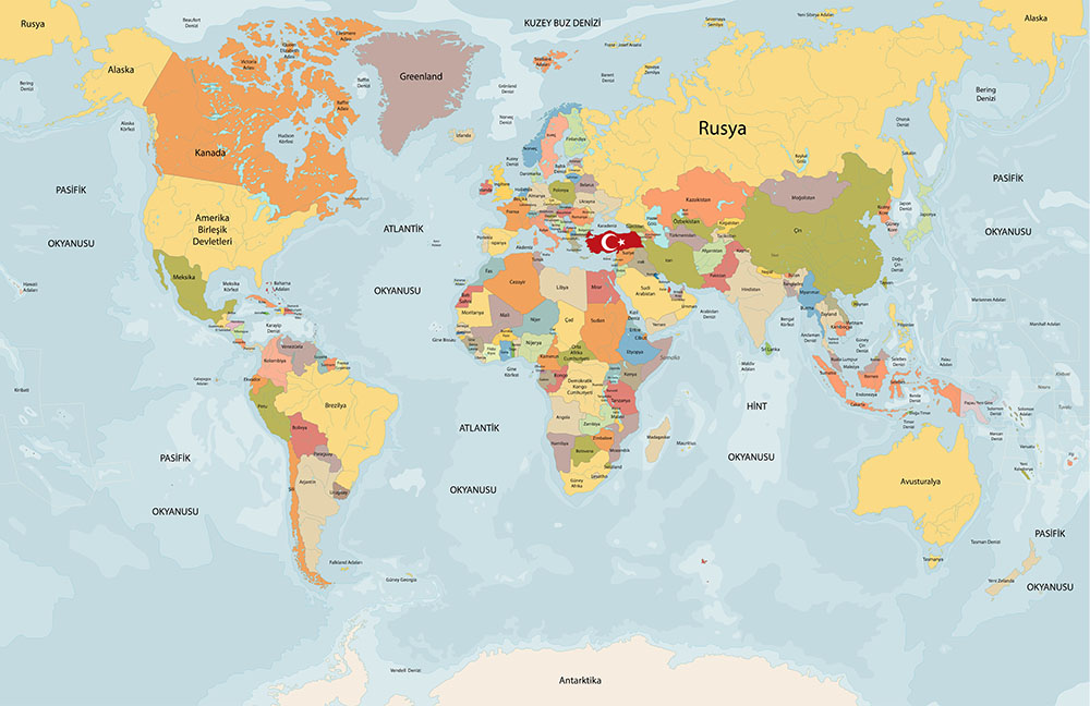Türkçe Dünya Haritası Duvar Kağıdı (Harita 125)