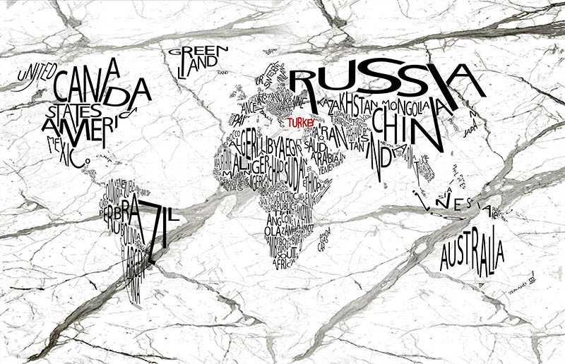 • Mermer Zemin Üzerinde Ülke isimleri 3 boyutlu şekilde satın alın!