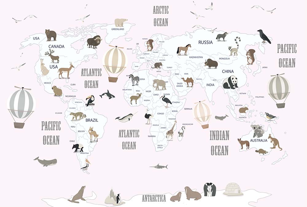 • Dünya Haritası Ülkeler Okyanuslar Pembe Zemin Çocuk Odası Duvar Kağıdı 3 boyutlu şekilde satın alın!
