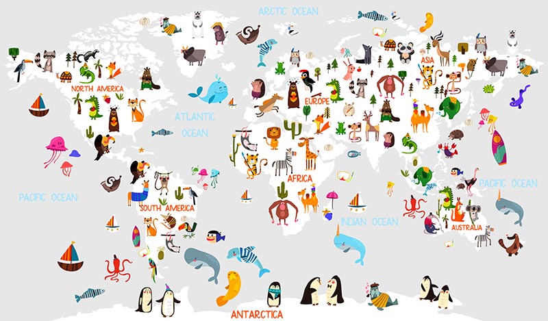 • Dünya Haritası üzerinde canlılar 3 boyutlu şekilde satın alın!