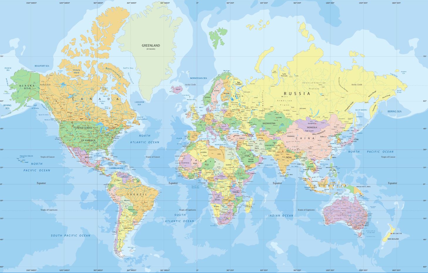 • Dünya Hartiası Duvar Kağıdı (Harita 89) 3 boyutlu şekilde satın alın!
