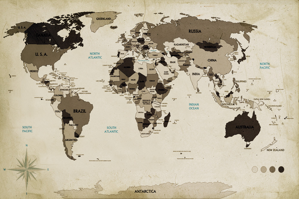 • Dünya Hartiası Duvar Kağıdı (Harita 92) 3 boyutlu şekilde satın alın!