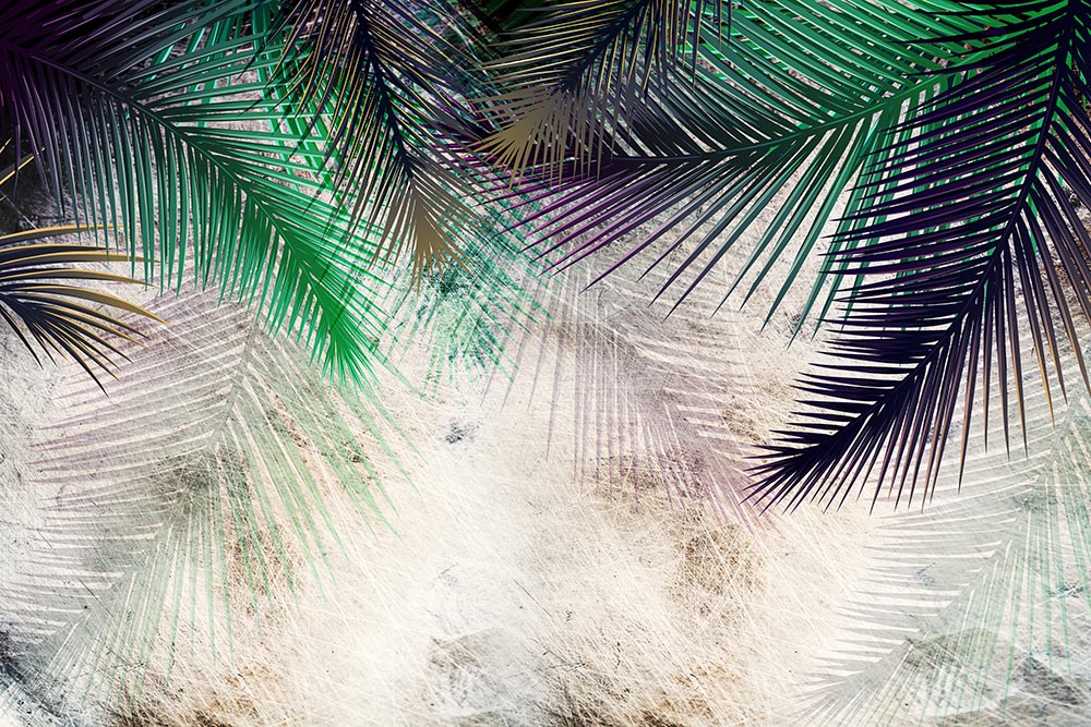 • Eskitme Metal Zemin Üzerinde Tropikal Yapraklı Duvar Kağıdı 3 boyutlu şekilde satın alın!