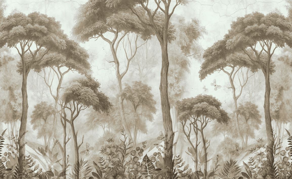 • Eskitme Tarz Tropikal Orman Manzarası Duvar Kağıdı , Vintage Tropikal Manzara 3 boyutlu şekilde satın alın!