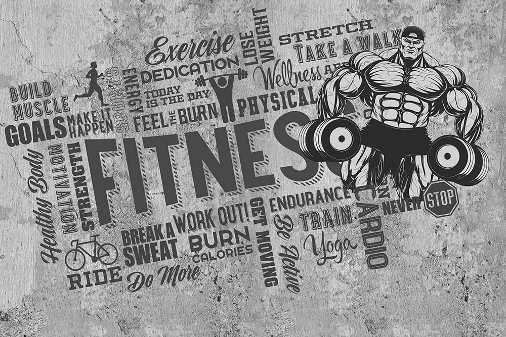 • Fitness Yazılı Özel Tasarım Duvar Kağıdı 3 boyutlu şekilde satın alın!