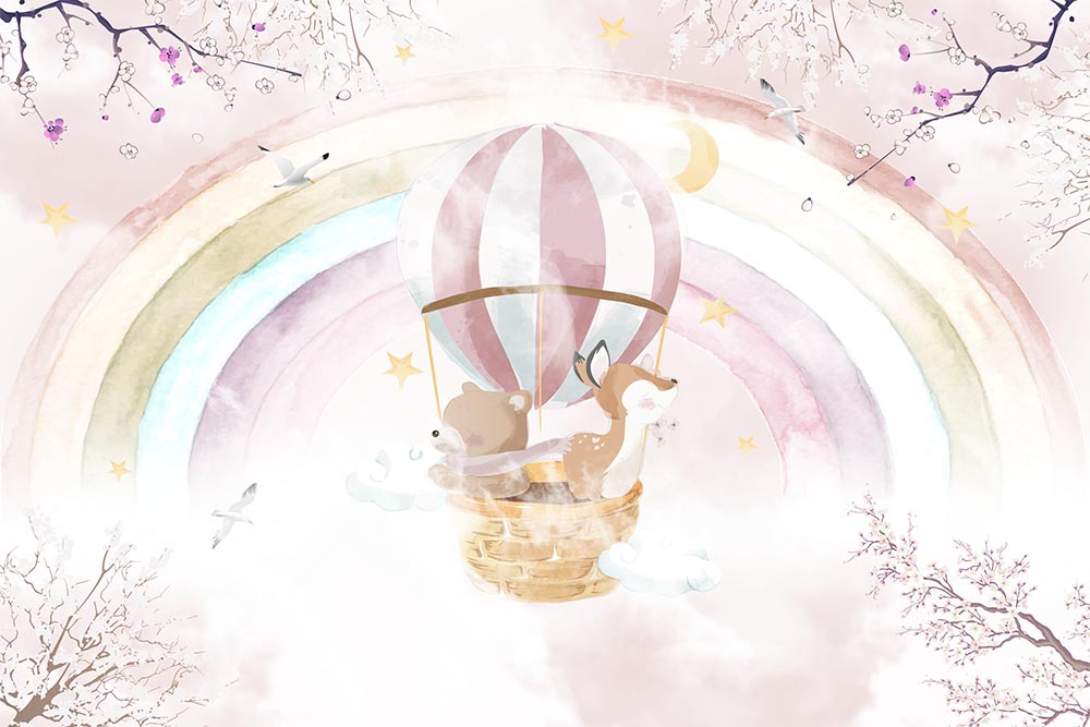 • Gökkuşağı Balon içinde Sevimli Canlılar Çocuk Odası Duvar Kağıdı 3 boyutlu şekilde satın alın!