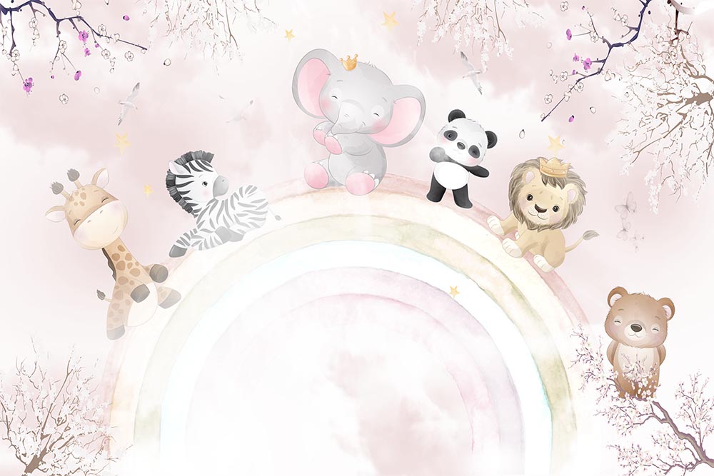 • Gökkuşağı Üzerinde Sevimli Hayvanlar Çocuk Odası Duvar Kağıdı 3 boyutlu şekilde satın alın!