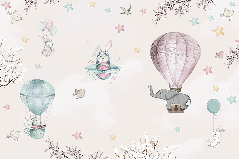 • Gökyüzünde Balonlar ve Yıldızlar Duvar Kağıdı 3 boyutlu şekilde satın alın!