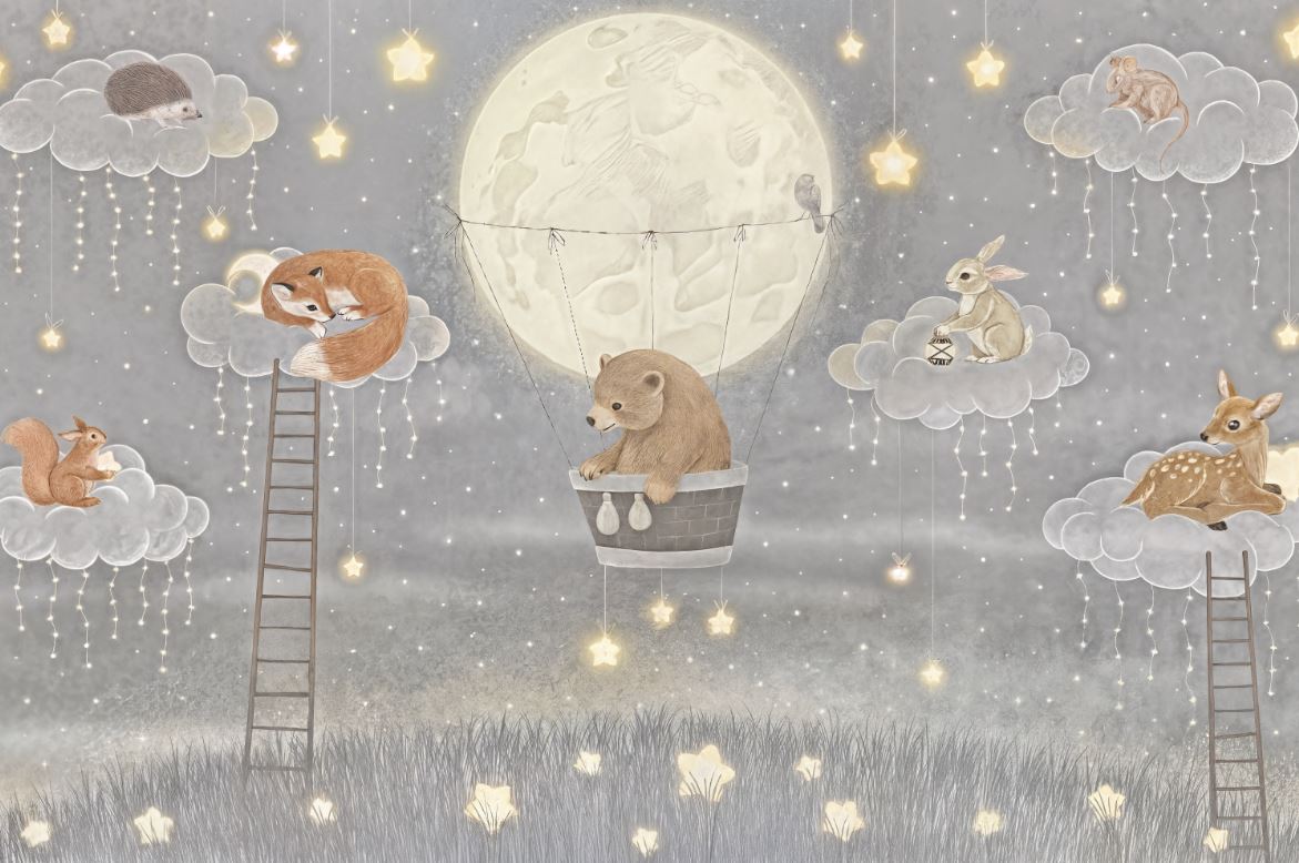 • Gökyüzünde Bulutlar üzerinde Sevimli hayvanlar çocuk odası duvar posteri 3 boyutlu şekilde satın alın!