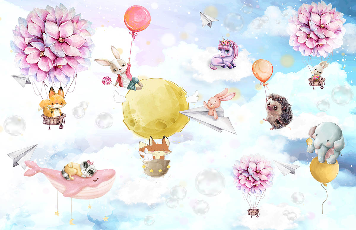• Gökyüzünde Sevimli Hayvanlar Çocuk ve Bebek Odası Duvar Kağıdı 3 boyutlu şekilde satın alın!