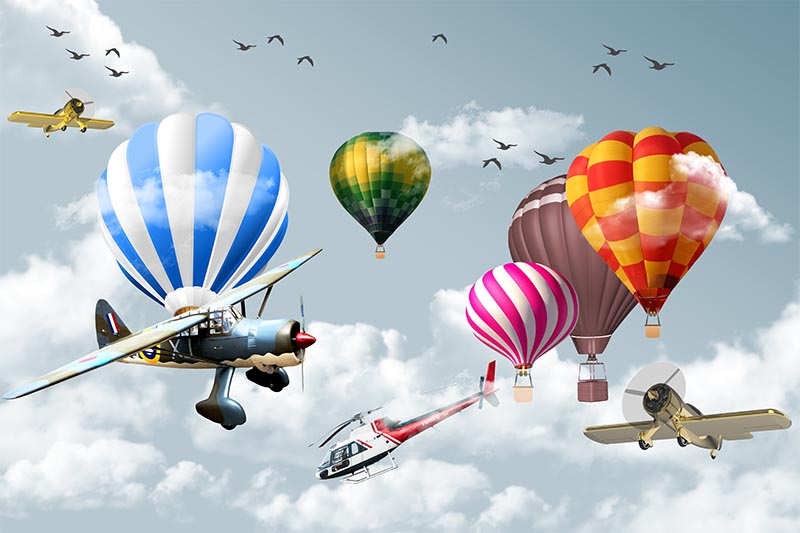 • Gökyüzünde Uçaklar ve Balonlar Çocuk Odası Duvar Kağıdı 3 boyutlu şekilde satın alın!
