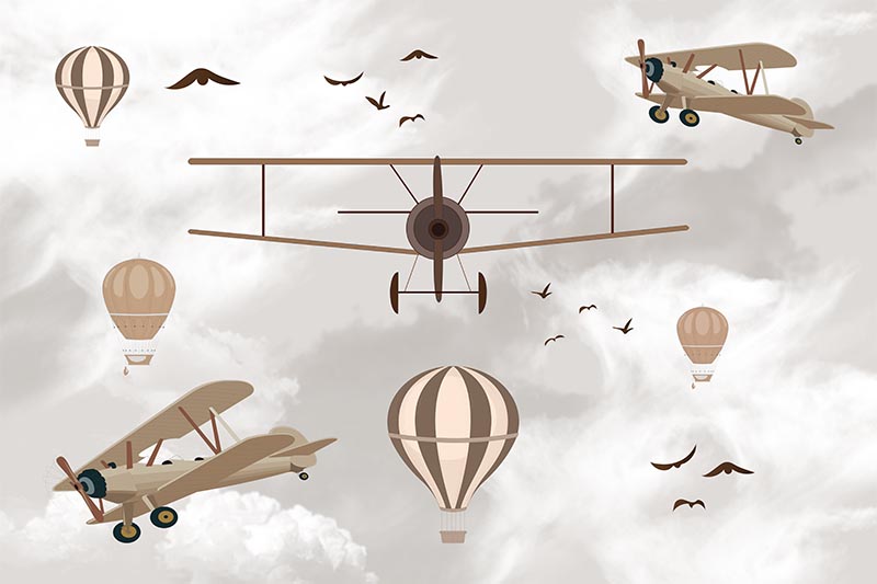 • Gökyüzünde Uçaklar ve Uçan Balonlar Duvar Kağıdı 3 boyutlu şekilde satın alın!