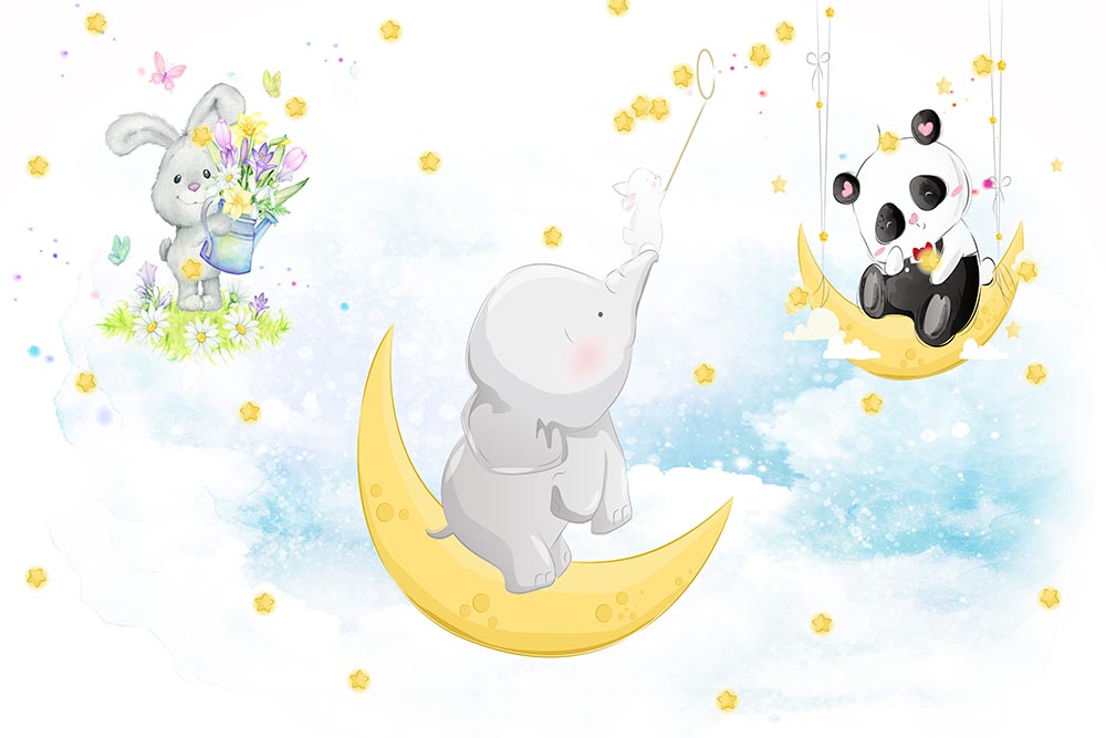 • Gökyüzündeki Sevimli Canlılar Çocuk Odası Duvar Kağıdı 3 boyutlu şekilde satın alın!