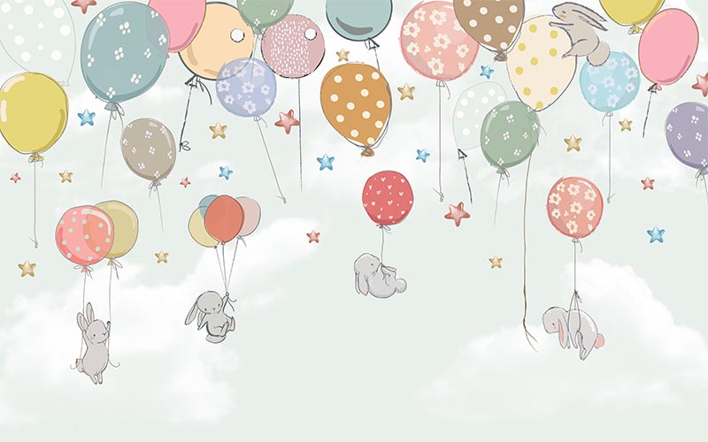• Gökyüzündeki Balonlar ve Tavşanlar Duvar Kağıdı 3 boyutlu şekilde satın alın!