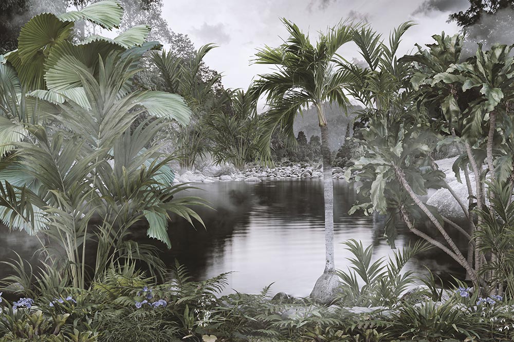 • Göl ve Tropikal Orman Manzarası Duvar Kağıdı 3 boyutlu şekilde satın alın!