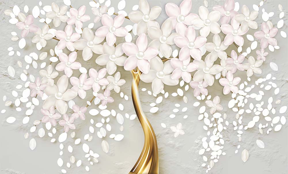 • Gold Ağaç Beyaz Çiçekler 3D Duvar Kağıdı 3 boyutlu şekilde satın alın!