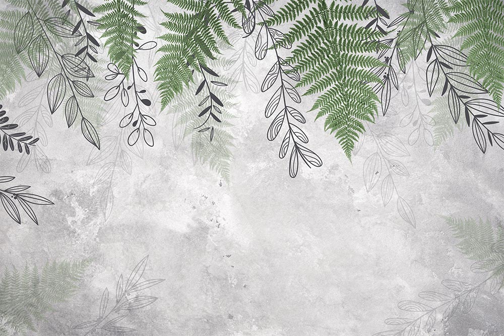 • Gri Beton Zemin Üzerinde Yapraklar Duvar Kağıdı 3 boyutlu şekilde satın alın!
