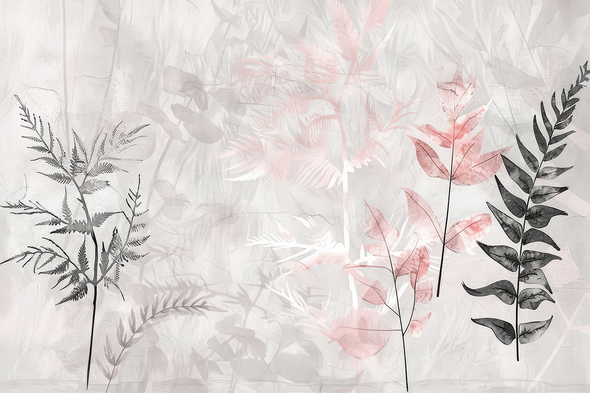 • Gri Duvar üzerinde Büyük Yapraklar Duvar Kağıdı 3 boyutlu şekilde satın alın!
