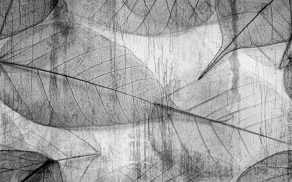 • Gri Tonlarında Büyük Yapraklar Duvar Kağıdı 3 boyutlu şekilde satın alın!