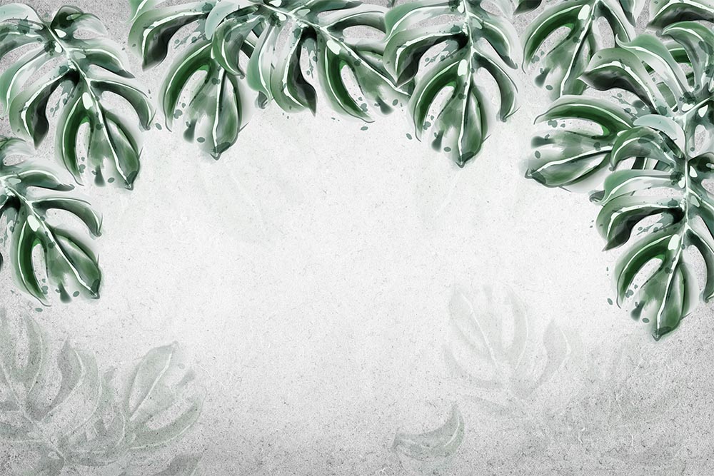 • Gri Zemin Üzerinde Tropikal Yapraklar Duvar Kağıdı 3 boyutlu şekilde satın alın!