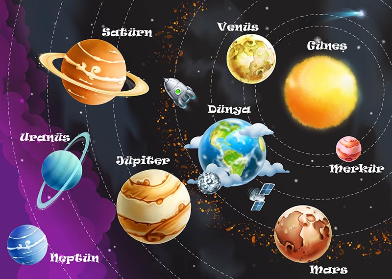 Güneş Sistemi - Gezegenler - Galaksi Eğitici Duvar Kağıdı