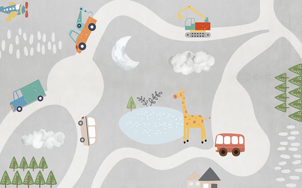 • iş makineleri duvar kağıdı , Çocuk odası Kamyon Dozer Duvar Kağıdı 3 boyutlu şekilde satın alın!