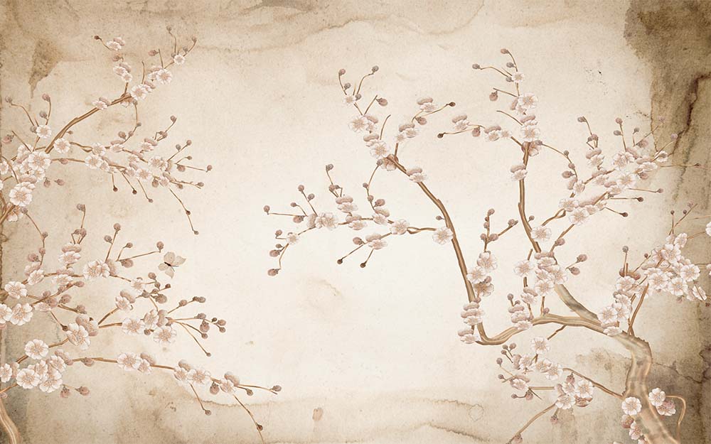 • Japon Tarz Ağaç Dalları ve Çiçekler Duvar Kağıdı 3 boyutlu şekilde satın alın!
