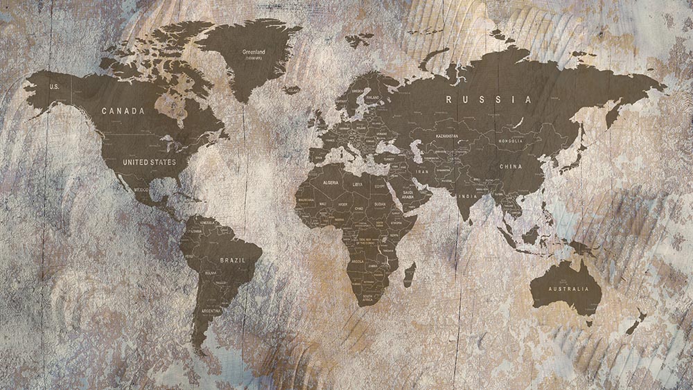 • Kahve Bej Tonlarında Eskitme Tarz Dünya Haritası Duvar Kağıdı 3 boyutlu şekilde satın alın!