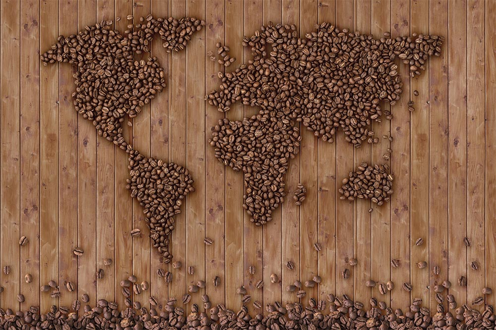• Kahve Çekirdeklerinden Dünya Haritası Duvar Kağıdı 3 boyutlu şekilde satın alın!