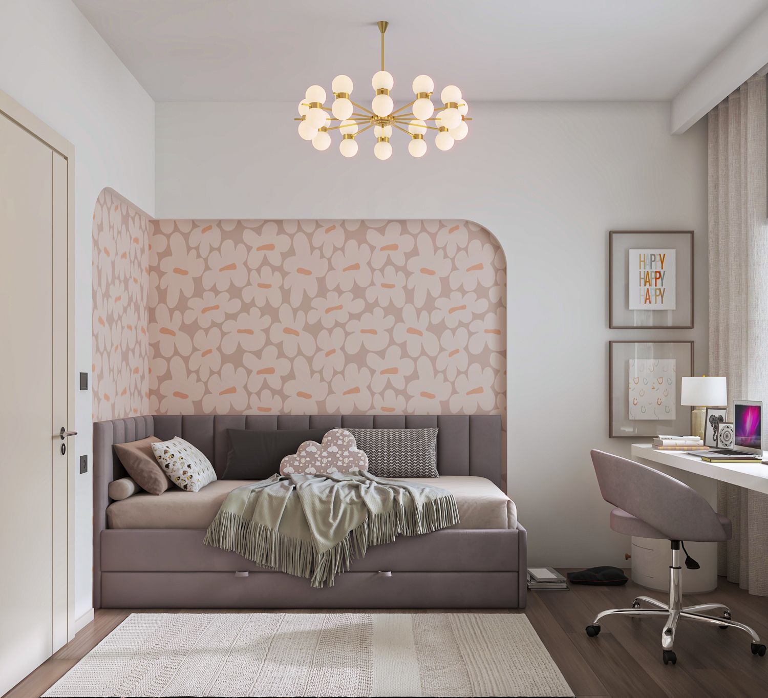Kibar Çiçekler Kız Çocuk Odası Çiçekli Duvar Kağıdı Modelleri