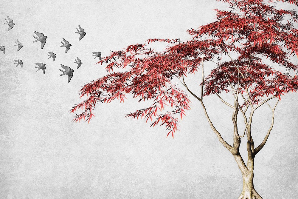 • Kırmızı Yapraklı Ağaç Duvar Kağıdı 3 boyutlu şekilde satın alın!