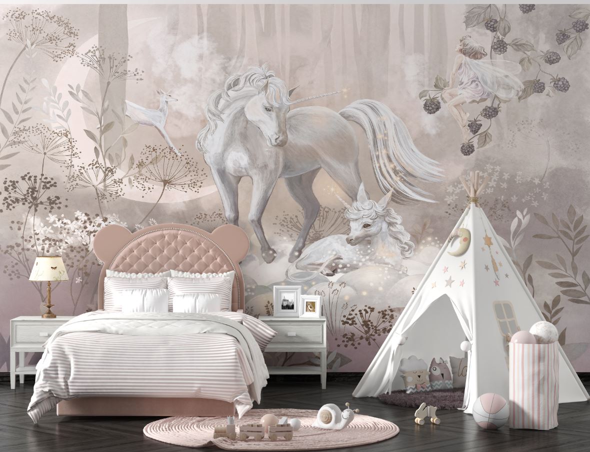 • Kız Çocuk Odası Duvar Kağıdı Modelleri Unicorn 3 boyutlu şekilde satın alın!