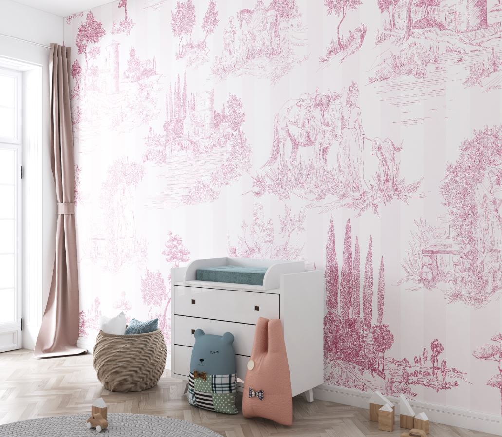 Kız Odası Duvar Kağıdı Çizim Tarz Prensesler ve Ağaçlar