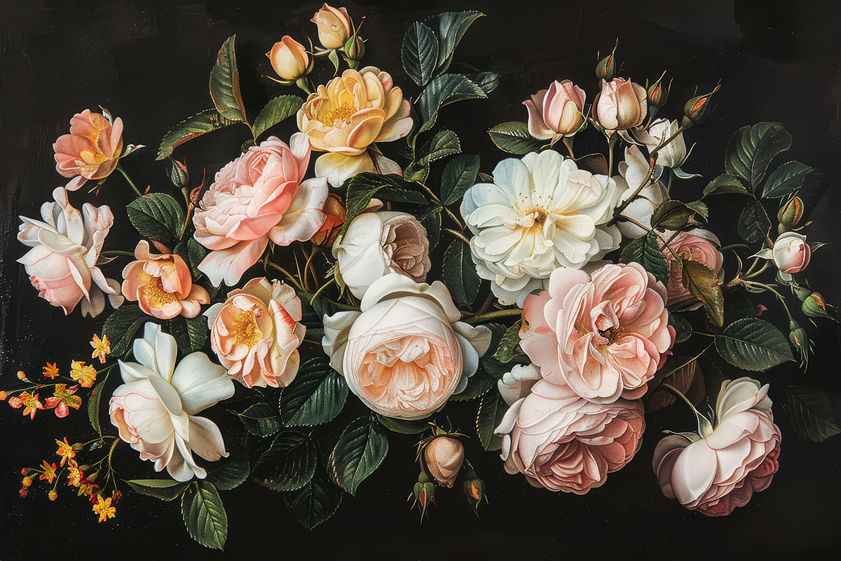Koyu Zemin Suluboya Renkli Çiçekler Duvar Kağıdı , Vintage Çiçekler Duvar Kağıdı