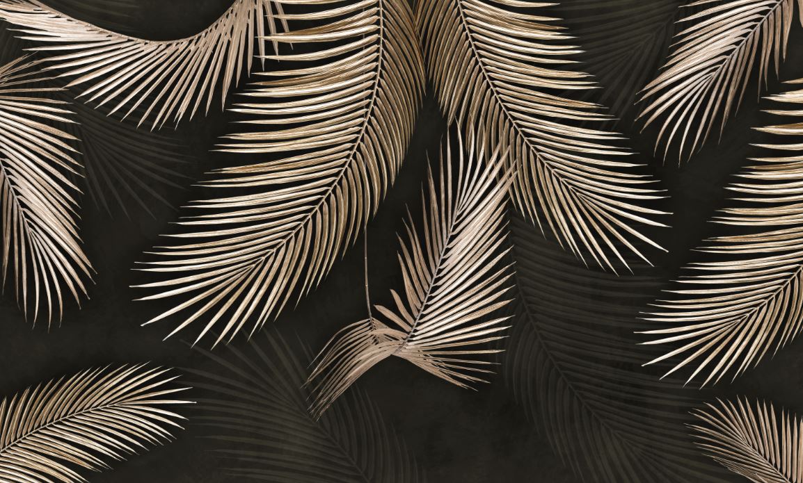 • Koyu Zemin Üzerinde Tropikal Yapraklar Duvar Kağıdı Modeli 3 boyutlu şekilde satın alın!