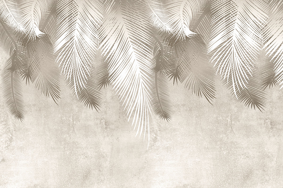 • Krem Bej Beyaz Tonlarında Tropikal Yapraklar Duvar Kağıdı Tasarımı 3 boyutlu şekilde satın alın!