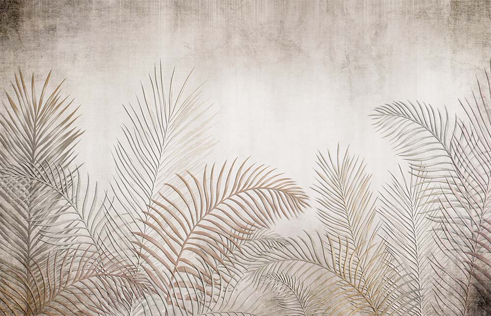 • Krem Bej Kahve Tonlarında Tropikal Yaprak Desenli Duvar Kağıdı 3 boyutlu şekilde satın alın!