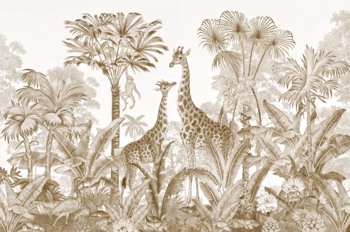 • Krem Kahve Tonlarında Zürafalar Çocuk Odası Safari Duvar Kağıdı 3 boyutlu şekilde satın alın!